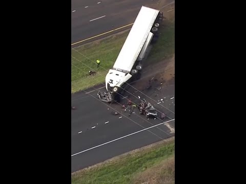 Distracted lady truck driver crashes semi into construction zone while on phone